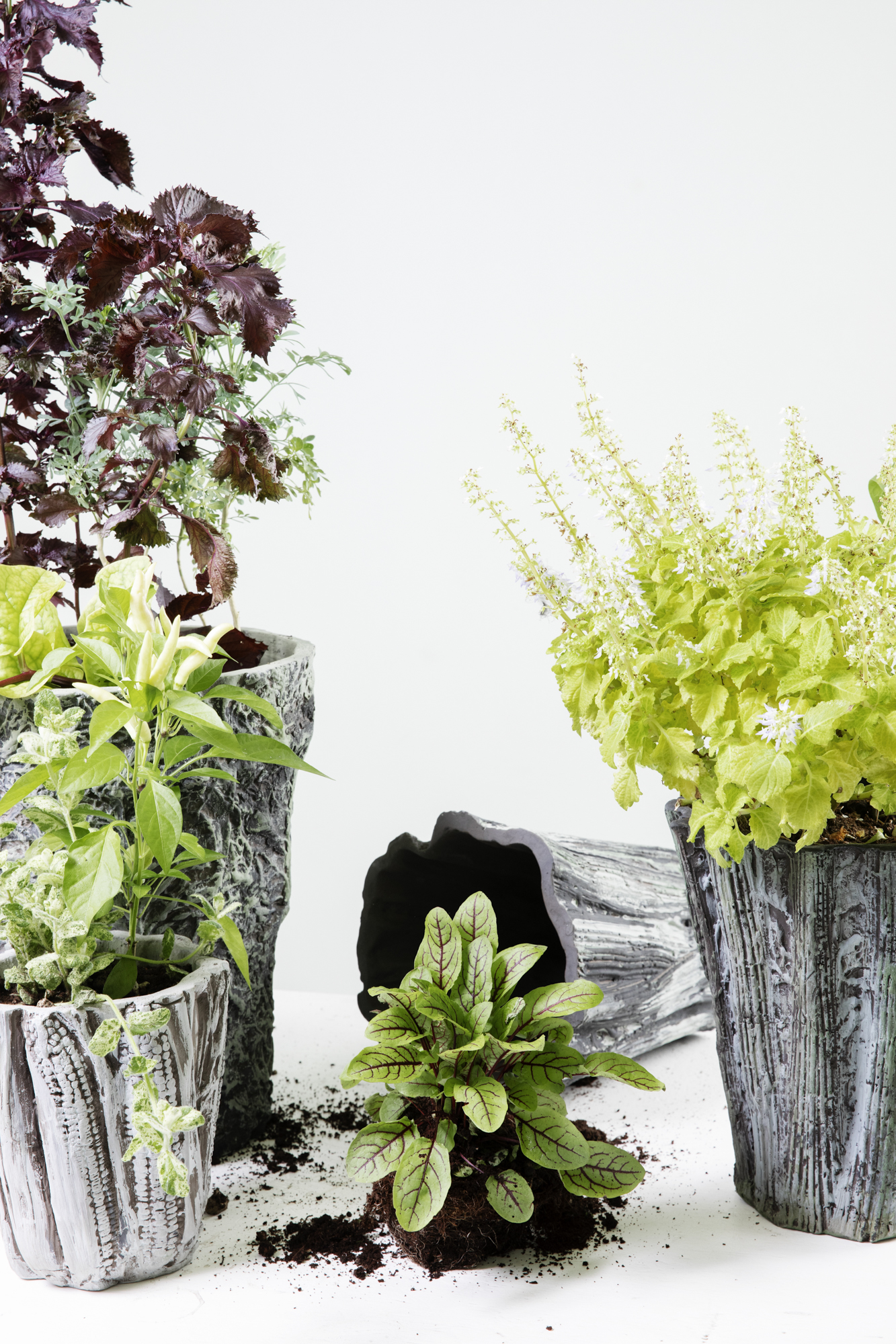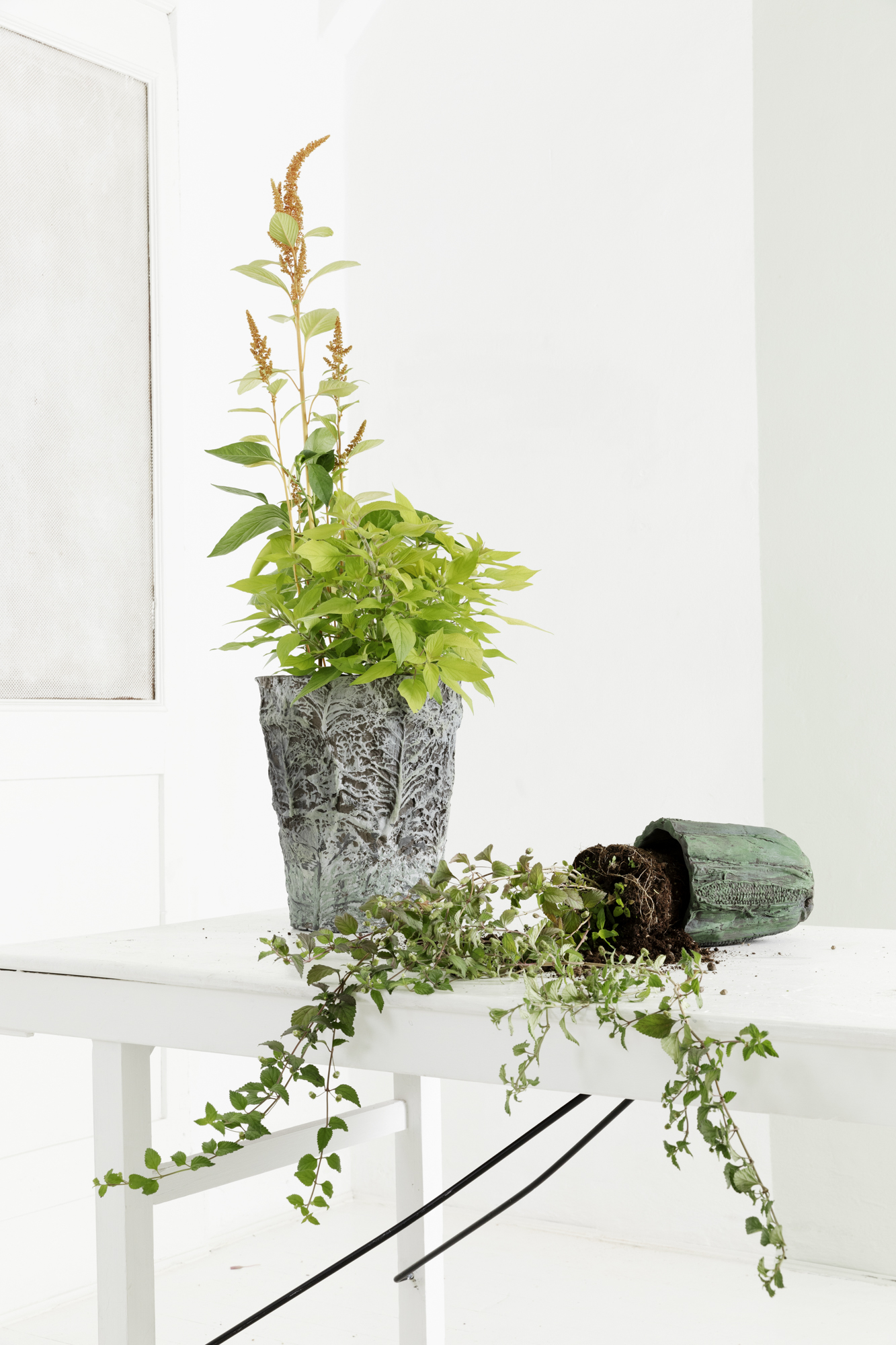 The vases, with a hole underneath to let the water drip,